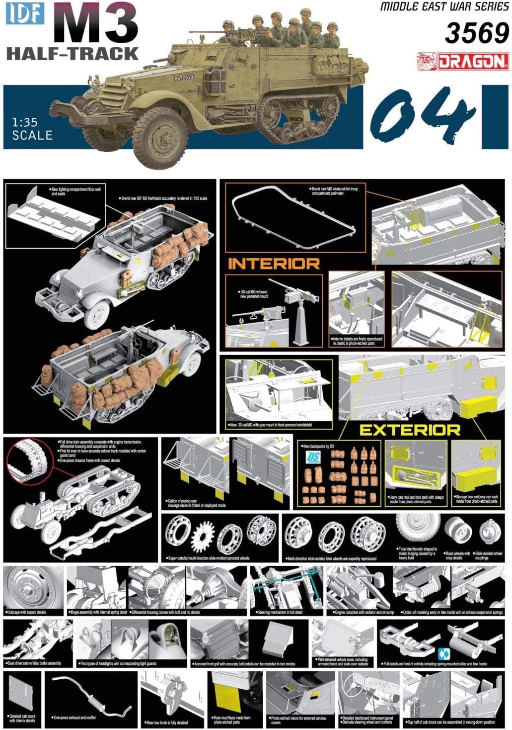This 1/35 scale kit inherits the excellent foundational features of Dragon's model of a WWII American M3 halftrack. However, it has been suitably modified to represent an Israeli M3 in the period of the Six-Day War.