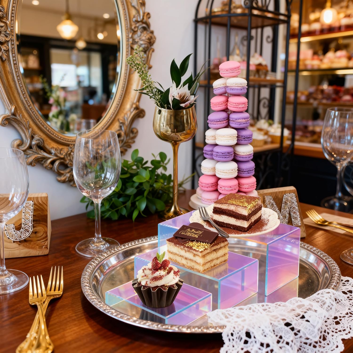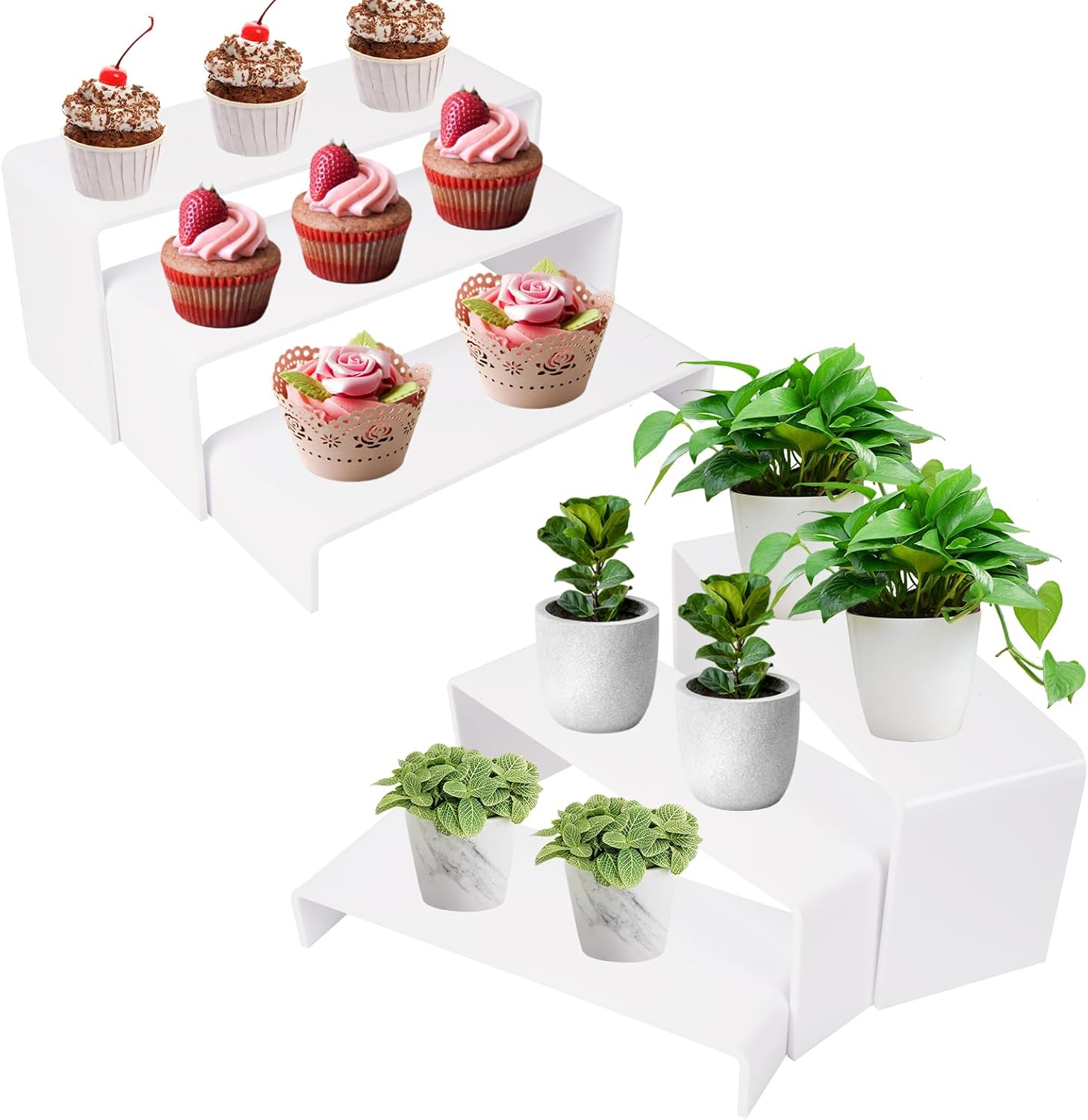 Revolutionize Your Display, Simplify Your Life!Introducing the stackable acrylic risers that combine stunning beauty with practical, space-saving innovation. No more bulky, hard-to-store display stands. Our collection is designed for the modern host, retailer, and organizer who values both form and function. Effortless Storage with Nesting Design We believe great design should be easy to live with. When the party is over or you need to change your display, these risers nest compactly together. This intelligent design reduces storage space by up to 80%, freeing up your cabinets for other things. It’s convenience, redefined.💧 Waterproof & Hygienic – Cleanup is a Breeze Spilled frosting or dusty trinkets? No problem. The non-porous, high-gloss acrylic surface is completely impervious to water. Simply rinse under the tap or wipe clean with a damp cloth in seconds. Enjoy a pristine, showroom-ready look with zero hassle, making them ideal for food-related uses.✨ Dazzling Prism-Like Sparkle Transform any space into an eye-catching showcase. The crystal-clear material acts like a prism, refracting light into a beautiful spectrum of colors that dance and change with the angle. Your products and creations aren’t just displayed; they are highlighted with a touch of magic.🎂 Create Captivating Tiered Displays Perfect for your cupcake parties, these risers add dimension and elegance to your dessert table. Beyond sweets, use them to organize your jewelry collection, elevate your favorite perfumes and makeup, or create an impressive appetizer spread at your next gathering. The possibilities are endless.Product Details:Material: High-Grade, Food-Safe Clear AcrylicFeature: Stackable, Waterproof, Easy to CleanIncludes: 12 Pieces (4 Complete Sets of 3)Dimensions per Set: - Large: 5.2" x 3" x 3" (13.3 x 7.6 x 7.6 cm) - Medium: 4.5" x 3" x 2" (11.4 x 7.6 x 5.1 cm) - Small: 3.5" x 3" x 1.3" (8.9 x 7.6 x 3.2 cm) Ideal For: Party & Wedding Dessert Tables, Retail Merchandising, Jewelry Stores, Home Decor, Bathroom & Vanity Organizers, and Craft Shows.Order your set today and experience the perfect blend of dazzling design and everyday practicality!