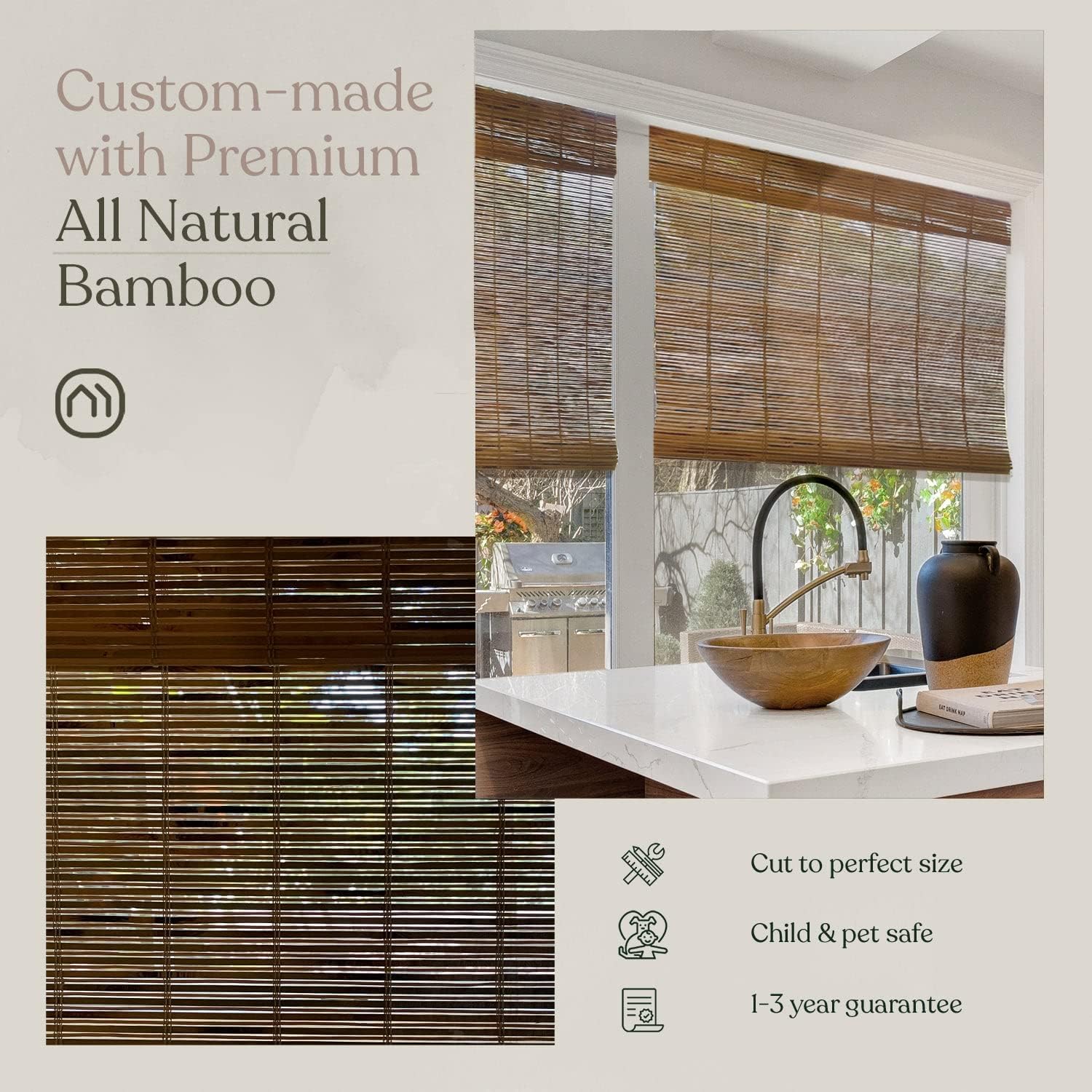 MOOD Custom Bamboo Shades | Aloha | Cordless Bamboo Roman Shades for Windows and Doors (Natural Woven) | Aloha Mango Wood (Sheer) | 48" W X 36" H